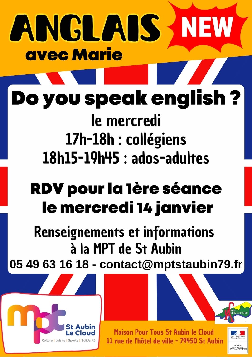 Renseignements : MPT St Aubin le Cloud- 05 49 63 16 18. contact@mptstaubin79.fr