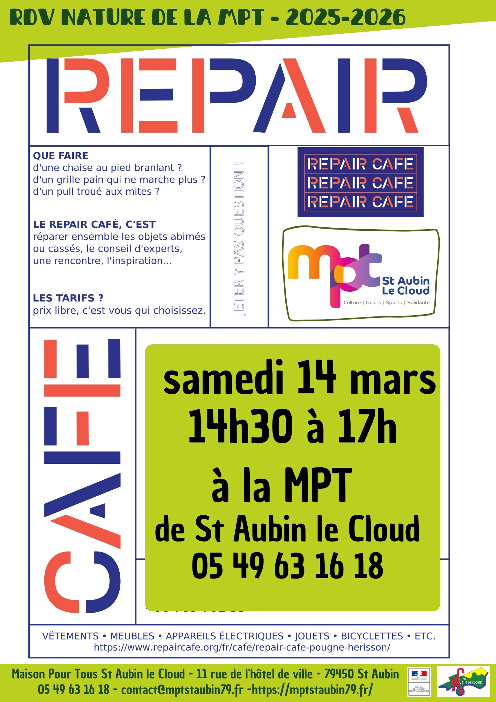 Renseignements : MPT ST Aubin le Cloud 05 49 63 16 18 - contact@mptstaubin79.fr